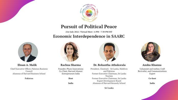 Debuted on November 20, 2021 as a series of year-long engagements/ innovative frameworks for solutions and research-oriented approach; on the subject of “Political Peace”. Phuro is engaged in to bringing together the thought leaders, politicians, entrepreneurs, and organizations; Phuro Innovations hosted its fourth virtual discussion titled “Economic Interdeopendence in SAARC” on 21 July 2022. Rachna Sharma mentioned that “when I talk about Peace, I specifically talk about positive peace, which is attitudes, institutions, and structures that create and sustain peaceful societies”.