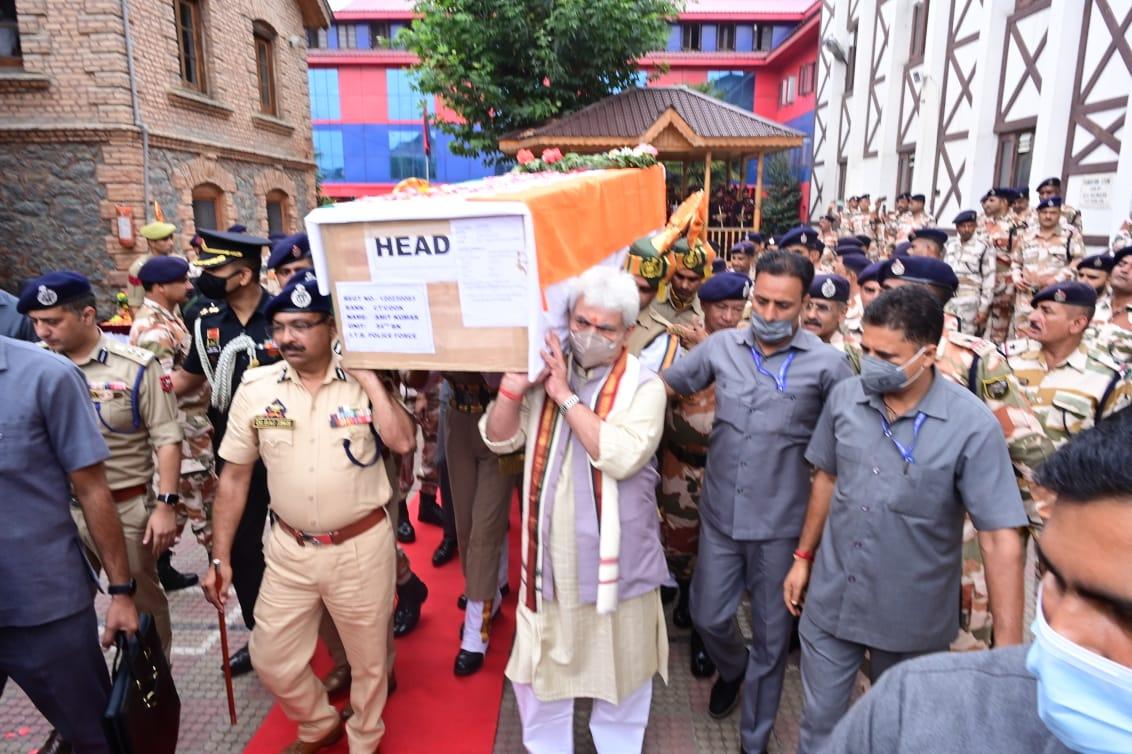 HomeJammuLG Manoj Sinha Lends Shoulder to Mortal Remains of ITBP Jawans Who...
