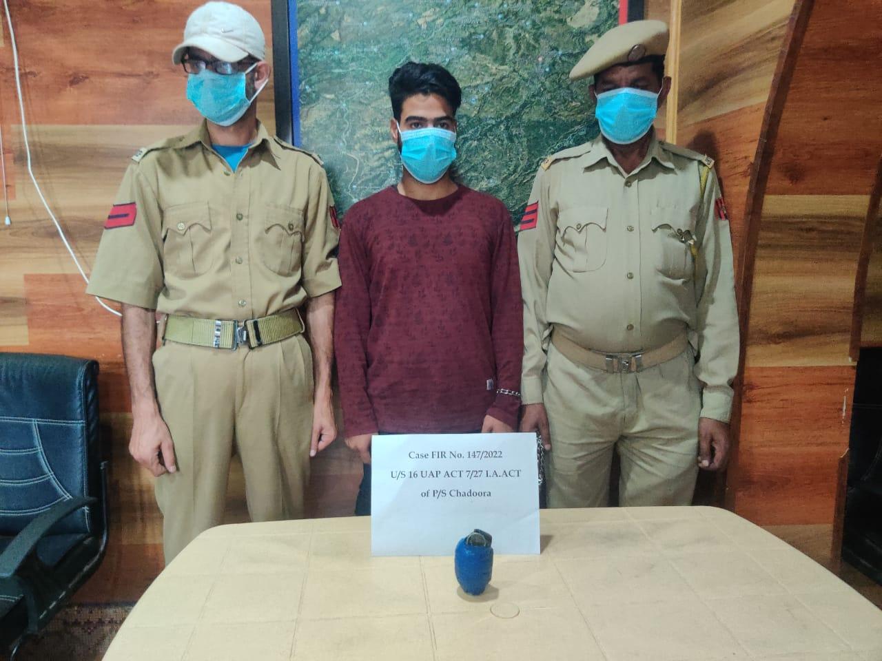 Srinagar: A hybrid terrorist of the Lashkar-e-Toiba (LeT) was arrested in a grenade attack case in central Kashmir’s Budgam district on Monday. A statement of the J&K Police issued here said that during the investigation of case FIR No 147/2022 of Police Station Chadoora about the grenade attack in Budgam, two hybrid terrorists were arrested earlier.