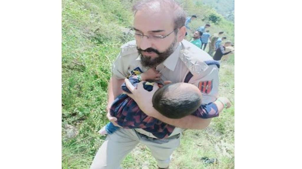 Jammu: Brave Police Officer rescuing a minor child from bus accident site
