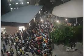 The students gathered in large numbers last night inside the university campus to protest over the suicide of the first-year student.