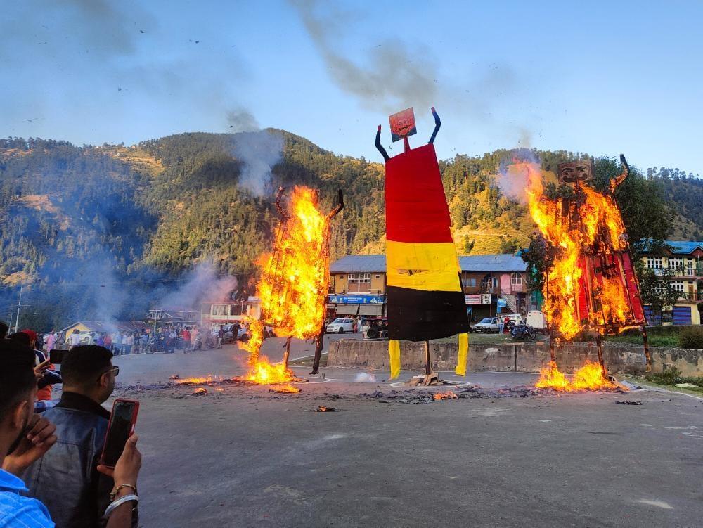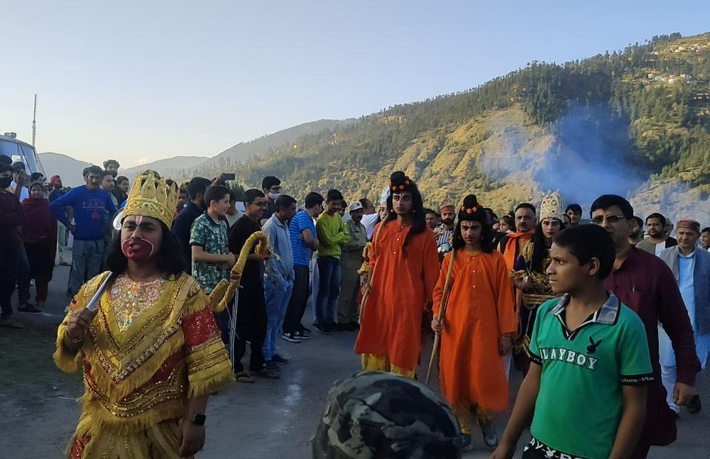 On the occasion, a victory march was taken out from Seri Bazaar to new Bus Stand Kotli Bhadarwah with tableau of Lord Rama, depicting the scenes and characters from Ramayana, to mark the return of Lord Rama after killing the demon king. Thereafter, the tall effigies of Ravana, Meghnath and Kumbhkarana were set on fire, amidst bursting of loud fire crackers.