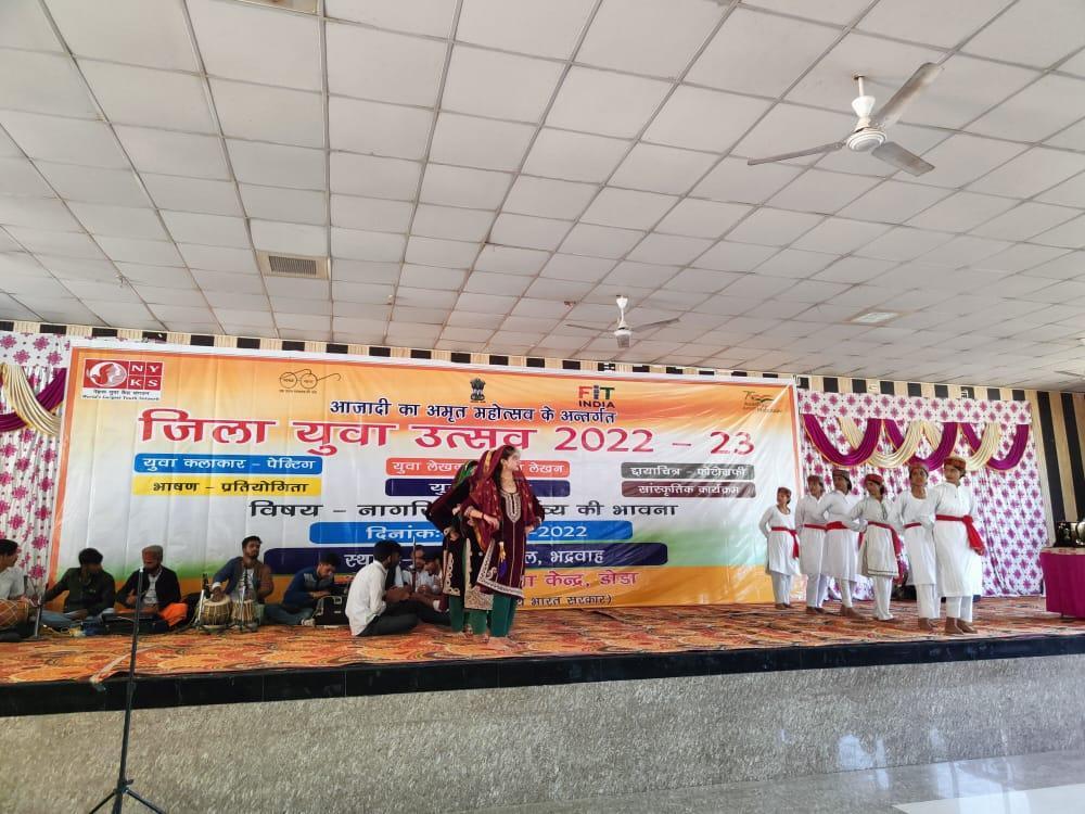 Bhadarwah: To engage youths in positive activities and to provide them a platform to showcase their talent, Nehru Yuva Kendra (NYK) Doda, Ministry of Youth Affairs & Sports, Govt. of India organised a one day ‘District Level Yuva Utsav’ at Community Hall, Bhadarwah under the aegis of “Azadi Ka Amrit Mahotsav”.