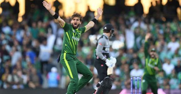 Electing to bat on winning the toss, New Zealand were rocked by an incisive opening spell by the tall Pakistan fast bowler Shaheen Afridi who got opener Finn Allen leg before in the third ball.