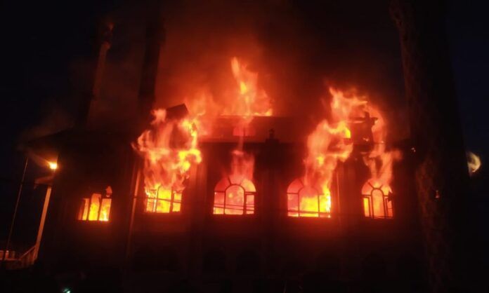 In visuals, the fire appears to have engulfed the entire compound and the building at the Jamia Masjid in Kargil’s Drass.