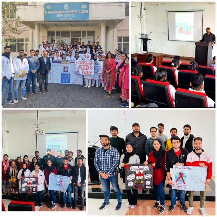 under the guidance of Prof Dr Shashi Sudan Sharma, Principal ,Nodal officer Dr Narinder Sharma , Dr Raman Bhagat Principal Govt Nursing college Akhnoor and Mrs Seema Rani AO Department of Swasthavritta & Yoga and. department of Rog Nidan Government Ayurvedic Medical college Akhnoor today celebrated World AIDS day. During the event seminar, poster presentation and road show was connected by students of second and third prof of GAMC and Nursing college . A seminar on AIDS was conducted at Govt nursing college Akhnoor and another seminar was conducted at GAMC Auditorium.The whole event was coordinated by Dr Priya Puesh Pargotra Associate Professor, Dr Abhishek Magotra Associate Professor and Dr Sheetal Gupta Assistant professor. Faculty of both the college attended the program.