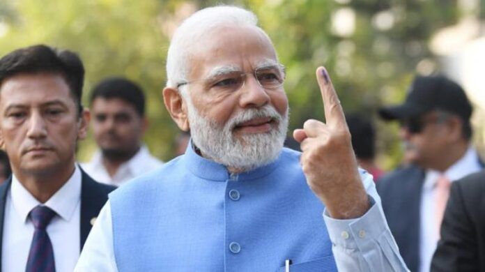 Gujarat, Dec 5: Prime Minister Narendra Modi cast his vote in the second phase of assembly elections in Gujarat’s Ahmedabad on Monday.