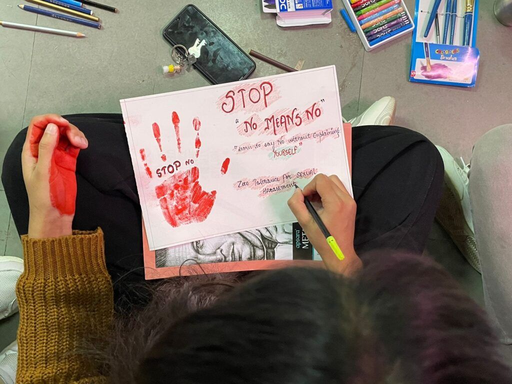 and to stop discrimination against women.The theme of the poster making competition was “No