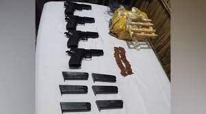 A search of the area, which is an agricultural field, led to the recovery of a packet containing four China-made pistols, eight magazines and 47 bullet rounds, the spokesperson said. (AGENCIES)