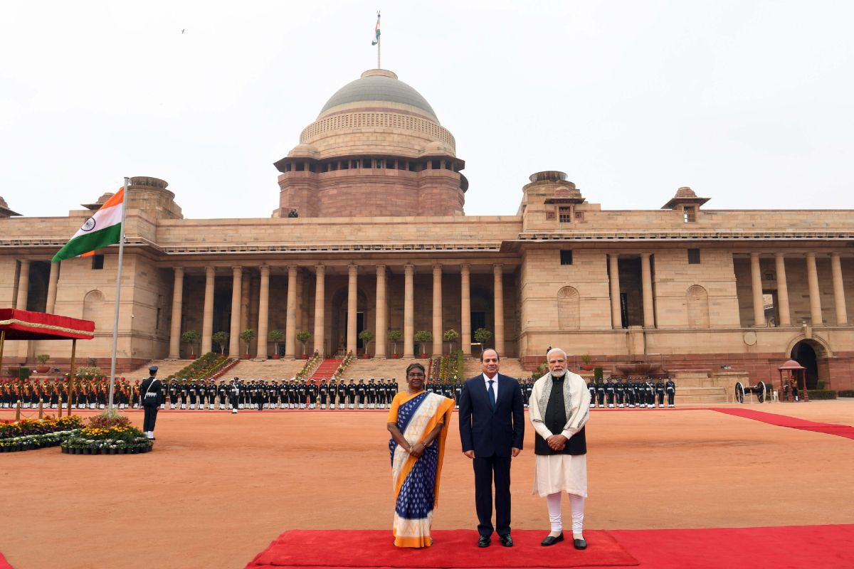 President Droupadi Murmu and Prime Minister Narendra Modi on Wednesday welcomed Egyptian President Abdel Fattah El-Sisi at Rashtrapati Bhavan.