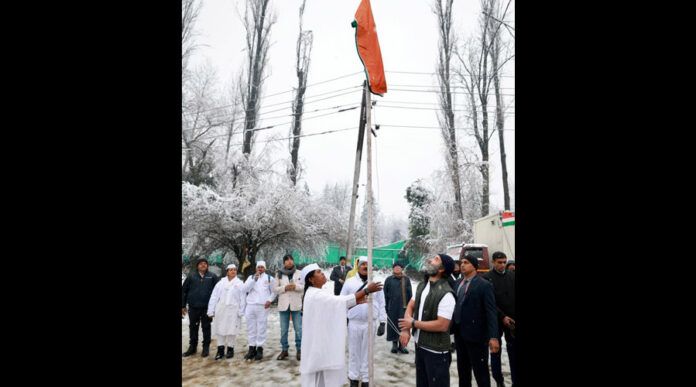 Donning a white T-shirt and a sleeveless jacket, the former Congress chief hoisted the flag at the camp site in Panthachowk to the tunes of the national anthem played to mark the culmination of the yatra, amid a fresh snowfall in the city.
