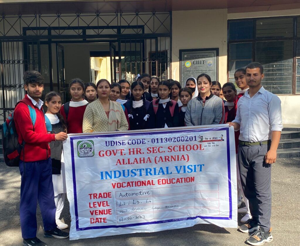 Jammu, 9th February: Under the SAMAGRA Siksha, Government Higher Secondary School Allah (Arnia) under guidance of Mrs Sushma Kumari Principal of the School organized an industrial visit of Vocational Students of Automotive Level 1,2,3 and 4 to provide firsthand experience of latest technologies, established at Centre for Invention, Innovation, Incubation and Training (CIIIT) amin Government Boys Polytechnic Jammu.