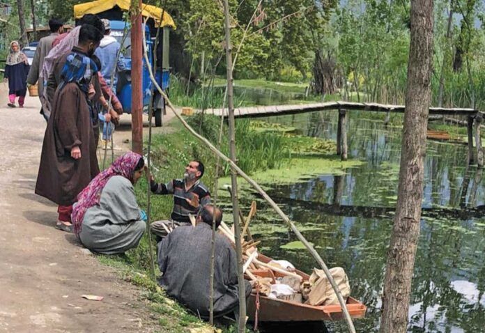 Srinagar, March 23: An elderly couple is waiting by the bank of the Dal Lake in J&K’s Srinagar city on the foreshore road.