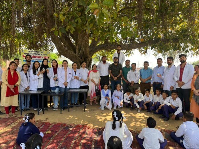 Under the Guidance of Respected Principal madam Dr Shashi Sudan Sharma , Nodal Officer sir Dr Narinder Sharma and AO madam Smt Seema Rani Department of Swasthavritta and yoga Government Ayurvedic Medical college Akhnoor today Conducted yoga and Millets Awareness camp at Government High school Barui . During the event A yoga Session was conducted for students and staff by Archna Sharma (yoga Teacher) and a awareness regarding Benifits of millets was also given by faculty and students of College.