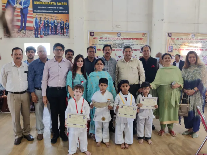 Association of Karate Jammu and Kashmir has organised 4th UT level karate Championship 2023 at Bhagwati Nagar Indoor sports complex In Jammu which shall continue for 2 days. The championship has been organised in the memory of Late Sh. Prem Nath Gupta and more than 200 contestants from various parts of UT of J&K are participating in the championship. The events have been divided based on the age and weight of the contestants.