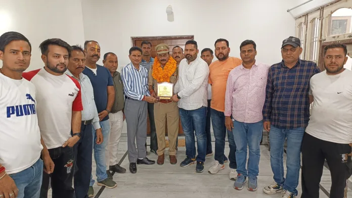 Bishnah (Jammu) : Anti Crime Team today Honoured Newly Promoted S.I Balraj Singh, Program was organised by Anti Crime Team Chairman Sham Lal Gupta in which DDC Member Bishnah Sh Dharminder Kumar and Chairman MC Bishnah Sh Rajan Sharma were Present as Chief Guest on the occasion.