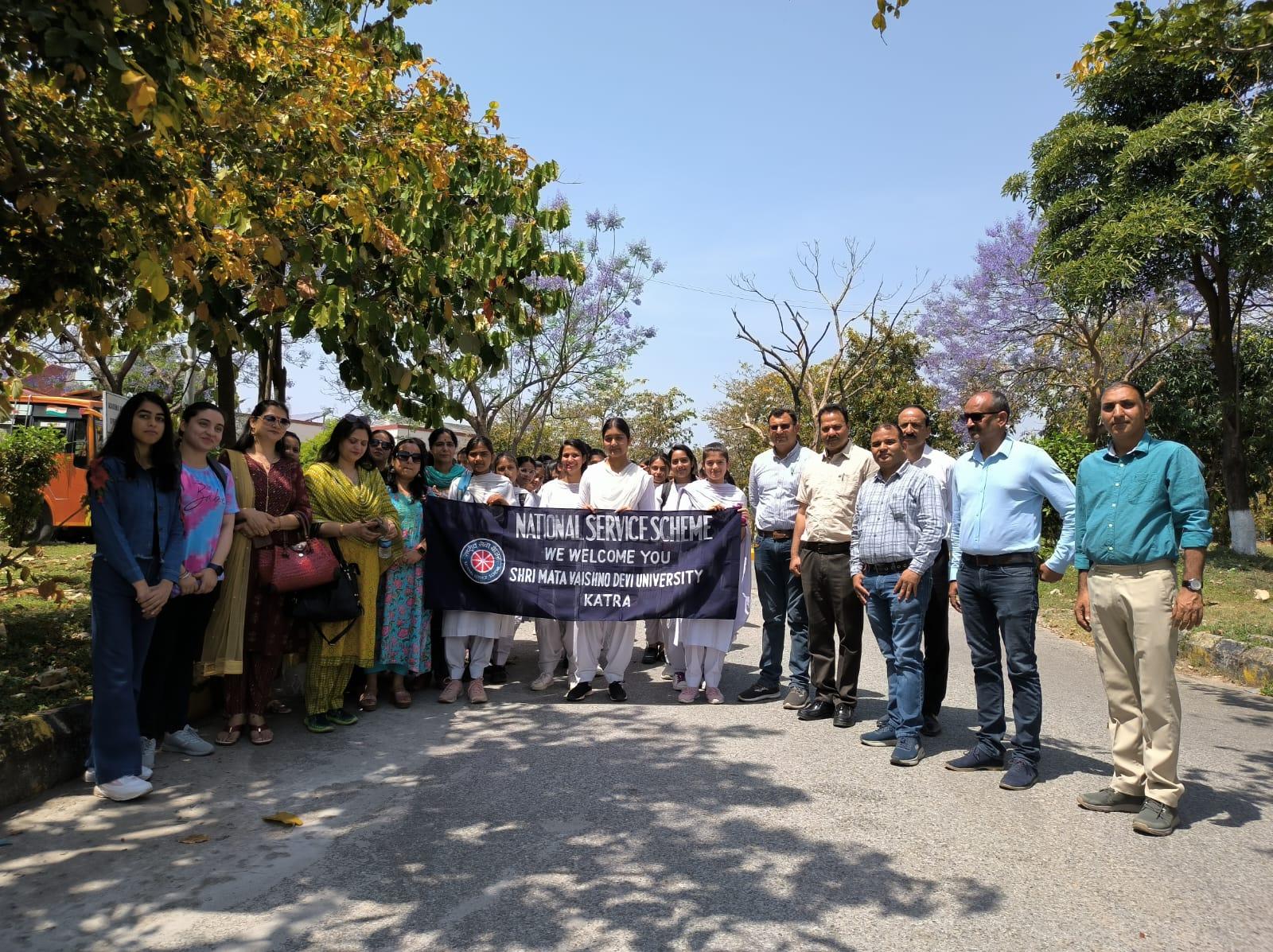 The visit was organized to enhance knowledge and awareness among students about higher educational institutions, under the direction of the directorate of SAMAGRA Shiksha. NSS volunteers of the University accompanied the school team during the visit.NSS Coordinator, Dr. Rajiv Kumar, and workshop Supdt. Er. Deepak Byotra welcomed the school officials and students and gave a brief introduction to the University.