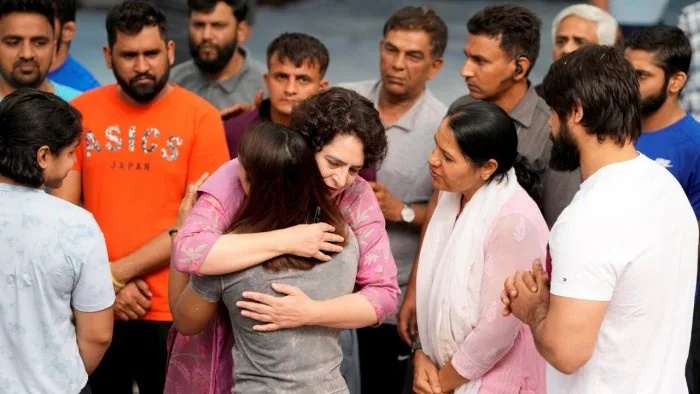 Priyanka Gandhi meets protesting wrestlers at Jantar Mantar, demands removal of WFI chief Brij Bhushan