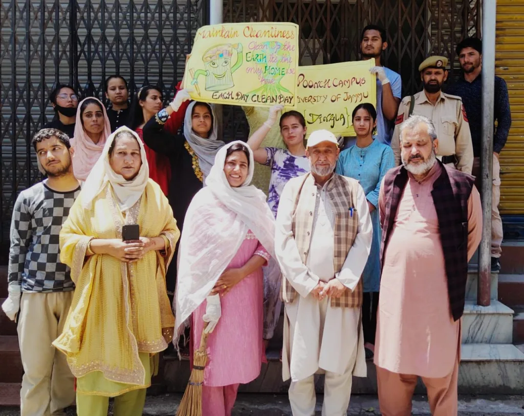 Dr. Rubia Bukhari Warden/Campus Officer Poonch Campus, Civil Society members, People representative Mrs Parveen Panch of Dingla, Mr. Shahzad Khan Senior Politican of the area, Hostel boarders of the Poonch Campus participated in the cleanliness drive.