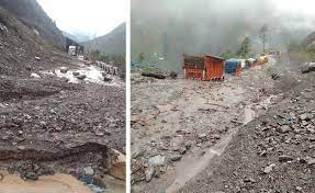 Jammu, May 31 : Heavy rains in Ramban and Poonch districts of Jammu and Kashmir led to landslides and mudslides, resulting in the closure of the Jammu-Srinagar national highway and Mughal road for traffic on Wednesday, according to officials. Around 200 vehicles have been stranded along various sections of the highway. The 270-kilometer-long Jammu-Srinagar national highway, the sole all-weather road connecting Kashmir with the rest of the country, was blocked due to mudslides and shooting stones. The closure will remain in effect until further clearance, as confirmed by SSP Ramban, Mohita Sharma, in a tweet. A significant landslide near the Ratta Chamb bridge on Mughal road also halted traffic movement, with authorities and machinery engaged in clearing the debris.