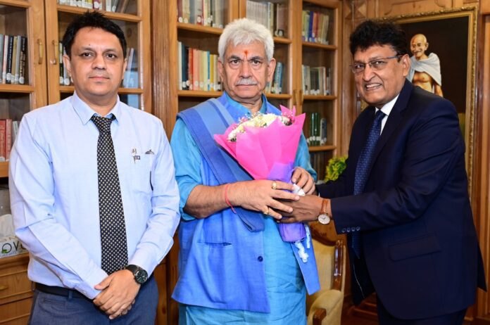 SRINAGAR, JUNE 07: A delegation of The Institute of Chartered Accountants of India led by CA (Dr) Raj Kumar Adhukia, Central Council member ICAI, called on Lieutenant Governor Shri Manoj Sinha at Raj Bhawan, today.