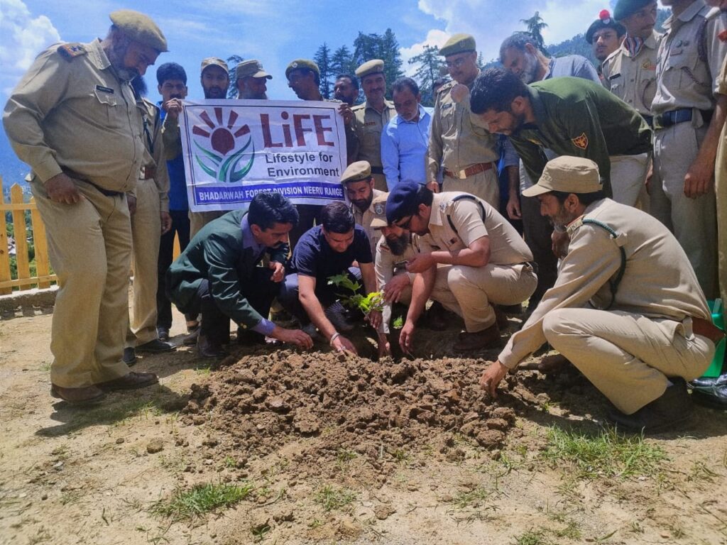 Bhadarwah June 06 : Continuing with Union Government’s flagship banner ‘Mission Life’ Forest Department and NCC cadets joined hands with jail authorties to carry plantation drive and motivational lecture on importance of forest for inmates at District Jail Bhaderwah.