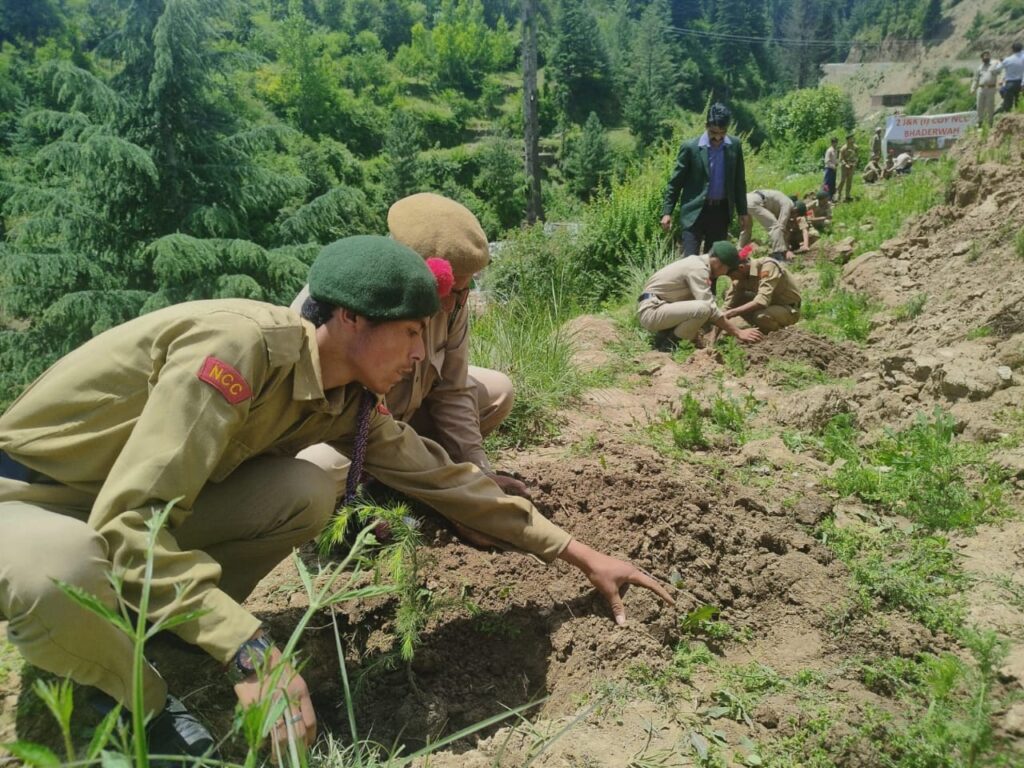 NCC cadets of Higher secondary school Bhaderwah and inmates enthusiastically participated in the plantation drive which witnessed planting of saplings of Chinar, Cedar, Kail. Medicinal, herbal and a few ornamental saplings were also planted during this drive.