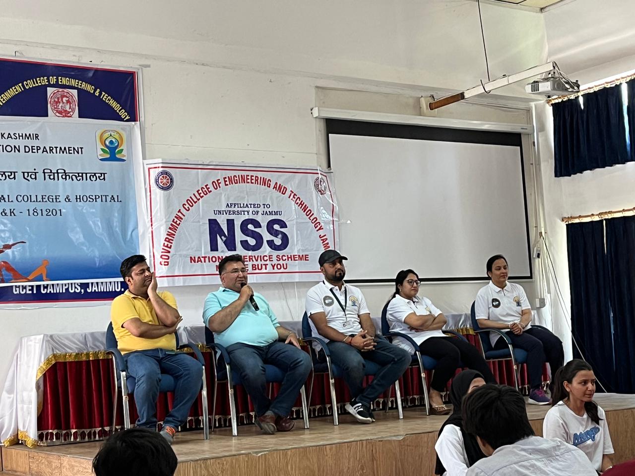 a Yoga awareness camp organised by the Department of Swasthavritta and Yoga, Govt. Ayurvedic Medical College Akhnoor at GCET Jammu in order to increase awareness among students and general public regarding upcoming International Day of Yoga. In the program students and Faculty performed Yoga Asana and Pranayam as per Protocol by Ministry of AYUSH Govt of India.