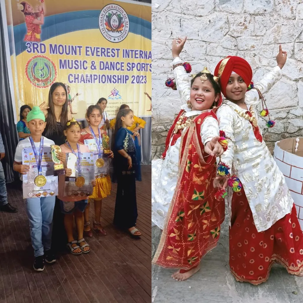 Jammu: Exhibiting brilliant performance in dance at 3RD MOUNT EVEREST INTERNATIONAL DANCE/SINGING/ACTING COMPETITION 2023, 6 Children from J&K UT brought laurels for India and especially J&K UT by winning gold medals and silver medals in various dances forms and age categories. Participating countries like India ,Sri Lanka ,Nepal,Bhutan, Bangladesh, Pakistan These children were selected for the international level competition on the basis of their outstanding performance at district level, state level and national level performances in various categories and age groups. The proud champions are:-