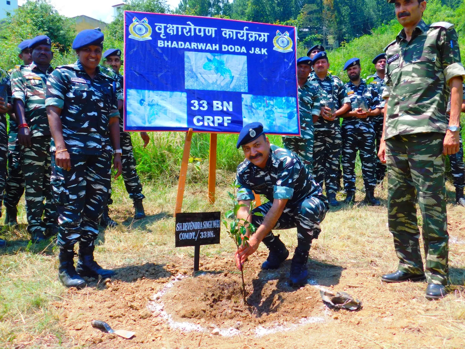 Bhaderwah, July 14 : Today, a mass tree plantation programme has been organised at Dett HQr/33 Bn CRPF, Sarna, Bhaderwah