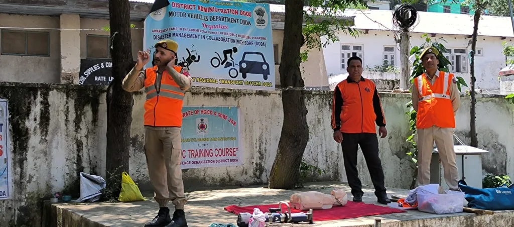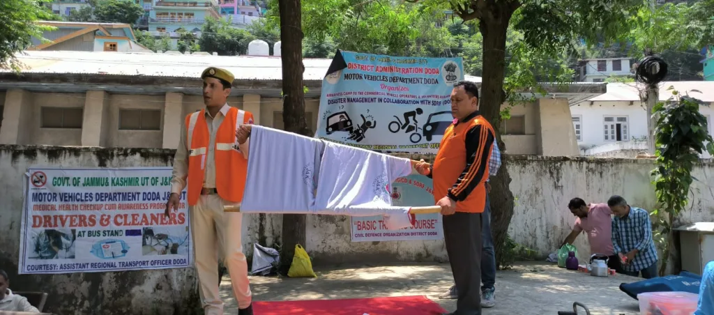 Doda, July 26 – Under the esteemed guidance of Deputy Commissioner Doda, Vishesh Mahajan, the Motor Vehicles Department (MVD) in collaboration with the State Disaster Response Force (SDRF) team of Doda conducted a highly beneficial awareness camp at Dak Bungalow Thathri. The primary focus of this camp was to address the alarming rate of accidents occurring in the district due to negligence and other factors. Spearheaded by ARTO Doda, Rajesh Gupta, the event aimed to provide specialized training to drivers and cleaners, equipping them with essential first aid procedures to safeguard both passengers and themselves in times of mishaps while driving.