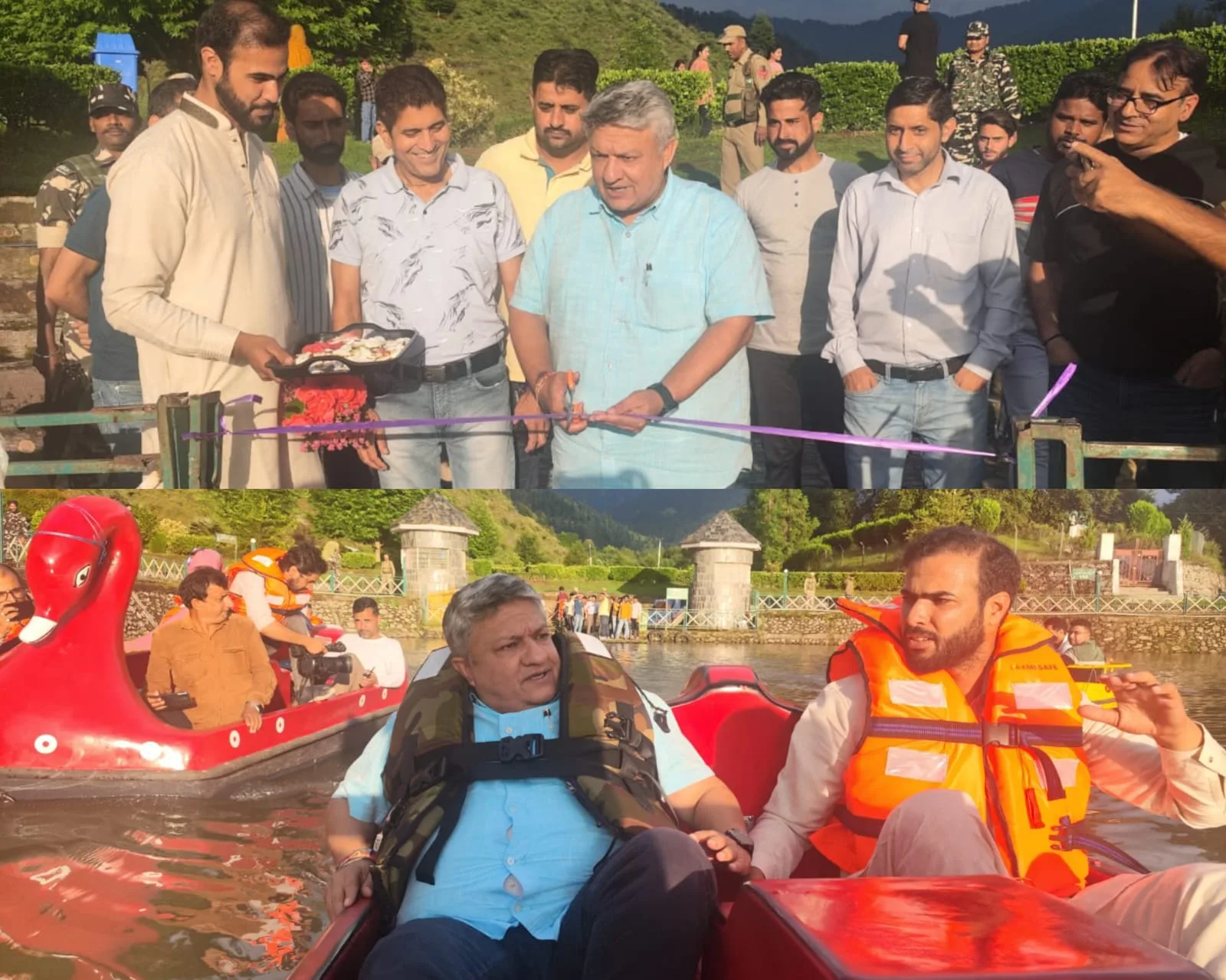 BHADERWAH, JULY 29: To attract tourists to the picturesque Bhaderwah Valley, Deputy Commissioner (DC) Vishesh Mahajan today inaugurated four state-of-the-art paddle boats here at Lake View Resort Gatha.