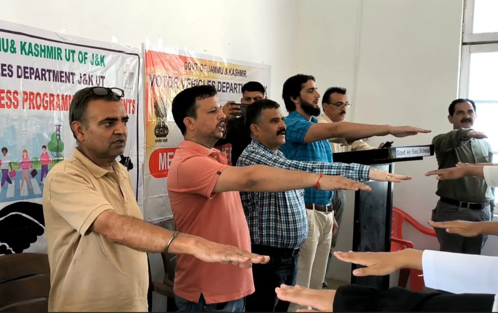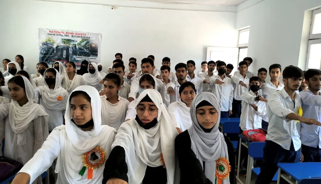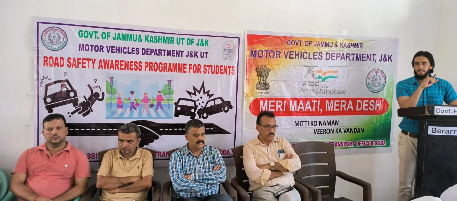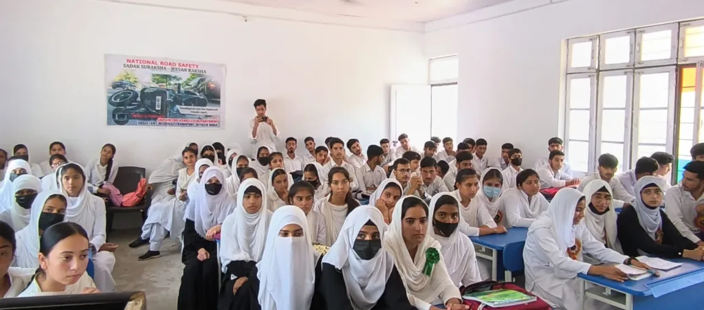 Doda, Aug 09: In a bid to promote road safety awareness among students, the Motor Vehicles Department (MVD) Doda conducted a special program at Govt HSS Bereru under the guidance of Deputy Commissioner Doda, Vishesh Paul Mahajan.