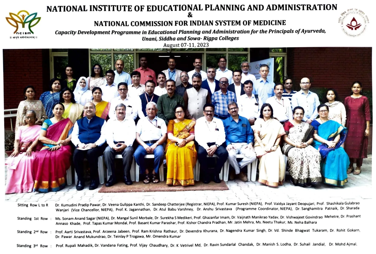 The program aimed at building the capacity of Head of the AYUSH Institutions at various levels like NEP 2020,Medical Assessment &Rating,Equity,Diversity & Community Management,Entrepreneurship & startup,Management & Leadership Skills,Digital Technology for Institutional Governance,Institutional Development Plan,etc.Many eminent persons from NIEPA,NCISM & outside experts delivered worthwhile informations.