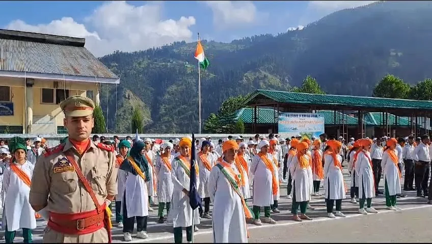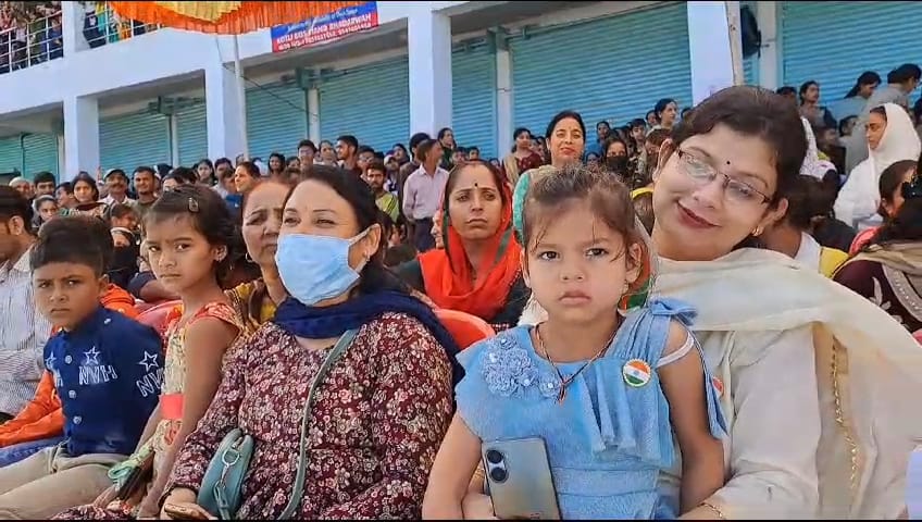 Bhaderwah: To participate in celebration of Nation’s journey of freedom and progress, thousands converged at different venues to participate in 77th Independence Day celebration across Bhaderwah on Tuesday. The main function was held at New Bus Stand Kotli Bhaderwah, where President Municipal Committee (MC) Bhaderwah Dr Shahid Mughal was the chief guest, while ADC Bhadarwah Dil Mir Choudhary and ASP Bhadarwah Vinod Sharma were the guests of honour. President MC Bhaderwah Dr Shahid Mughal hoisted the Tricolour and took salute from the march past squads of JKAP, IRP, CRPF, NCC, Civil Squads, Students of Govt and private schools. Beside a special squad of Fire and Emergency services also participated in the march past.