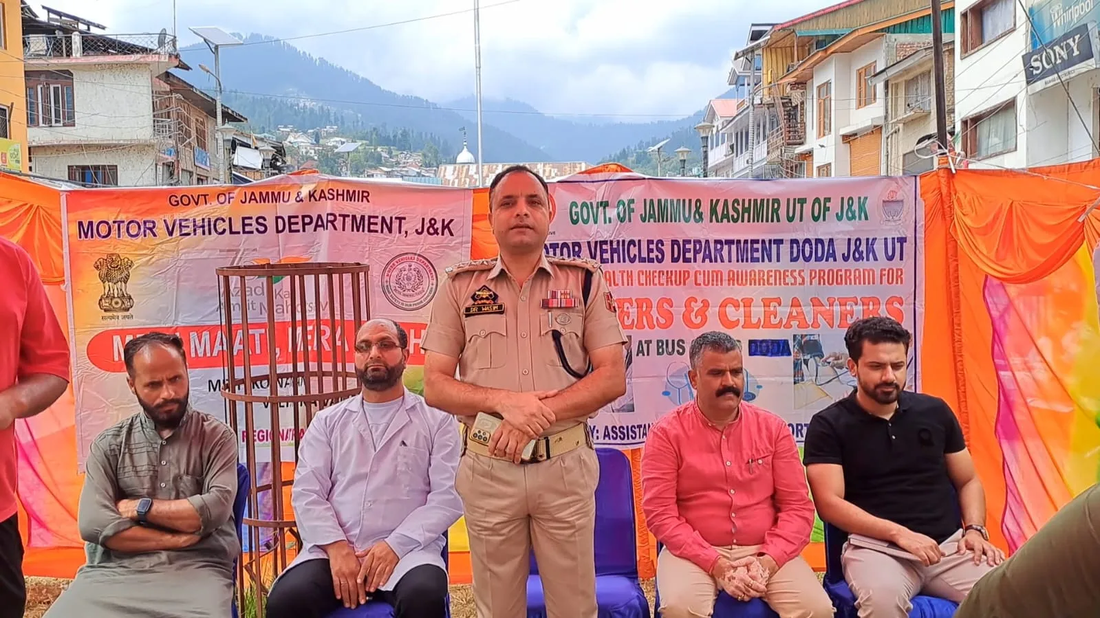 The event organized by ARTO Doda Rajesh Kumar at Seri Bazaar Park Bhaderwah, was inaugurated by SDPO Bhaderwah Wasim Mehmood along with Tehsildar Bhaderwah Umar Jahanzeb. Inspector MVD Robin Parihar, Dr Iftikhar Malik from AYUSH, Dr Sanjay Sharma Eye Specialist, Transport Association Doda President Tahir Hussain Shah and Naseer Mehboob YAC Chairman were also present on the occasion.