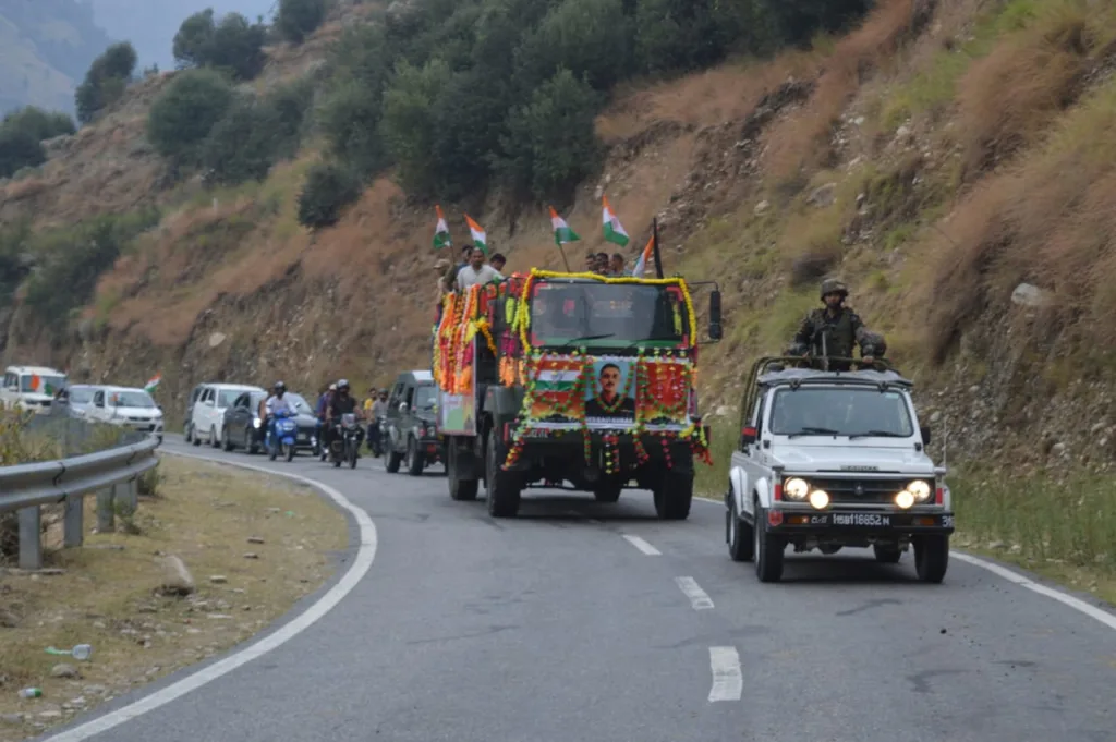 Earlier, the body of the martyr, wrapped in the Tricolour, arrived in a Army truck accompanied by some officers and jawans of his battalion. It was kept at his house for some time where family members, relatives and villagers paid floral tributes to him.