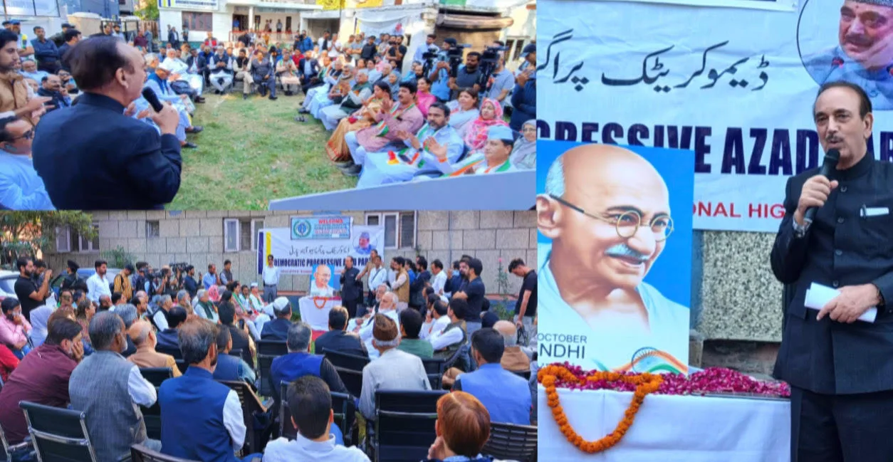 SRINAGAR OCT 02: Vowed to continue with the principles of Gandhian ideology, the DPAP chairman Ghulam Nabi Azad on Monday said that in present times the ideals of nonviolence, Truth, unity and justices are some of the founding principles that Democratic Progressive Azad Party believes in. “These principals are the bedrock of our party’s ideology & my vision for Jammu & Kashmir. Let us continue on our journey hand in hand towards a more equitable & progressive future,” he told at the celebration function of Gandhi Jayanti in DPAP office, Srinagar. On the occasion, Gandhi Global Foundation also felicitated Azad and admired his works and contributions in promoting the Gandhian ideology throughout his life. Azad said that one can easily understand why the Gandhi has devoted his life to such principles given the present situation where the humanity is overridden by materialistic interests. “He was not hungry for power but aiming to build harmony, unity and brotherhood based on justice and equality,” he added. He strongly recommended his party workers to read the biography of Gandhi and understand how the superior motives for the humanity can be achieved peacefully and the system of equality and justice can be established. “His life was not easy. He was cornered from all sides for speaking truth. But he didn’t care since he was having no personal interests. Even till his last breath he fought and believed in the system of equality and justice which made him the father of nation,” he said. Among others who were present on the occasion were Taj Mohiuddin Treasurer, Vice Chairman G.M.Saroori, Padhma Shri S.P.Verma, Mohd Amin Bhatt Provincial President, Salman Nizami Chief Spokesperson, Haji Musadiq, Shafiq Shabnam, Khalid Tufail, Amir Bhatt Dist President, Arif Maqbool, Mushtaq Khanday, AAmir Rasool, Umar Kakroo and others.