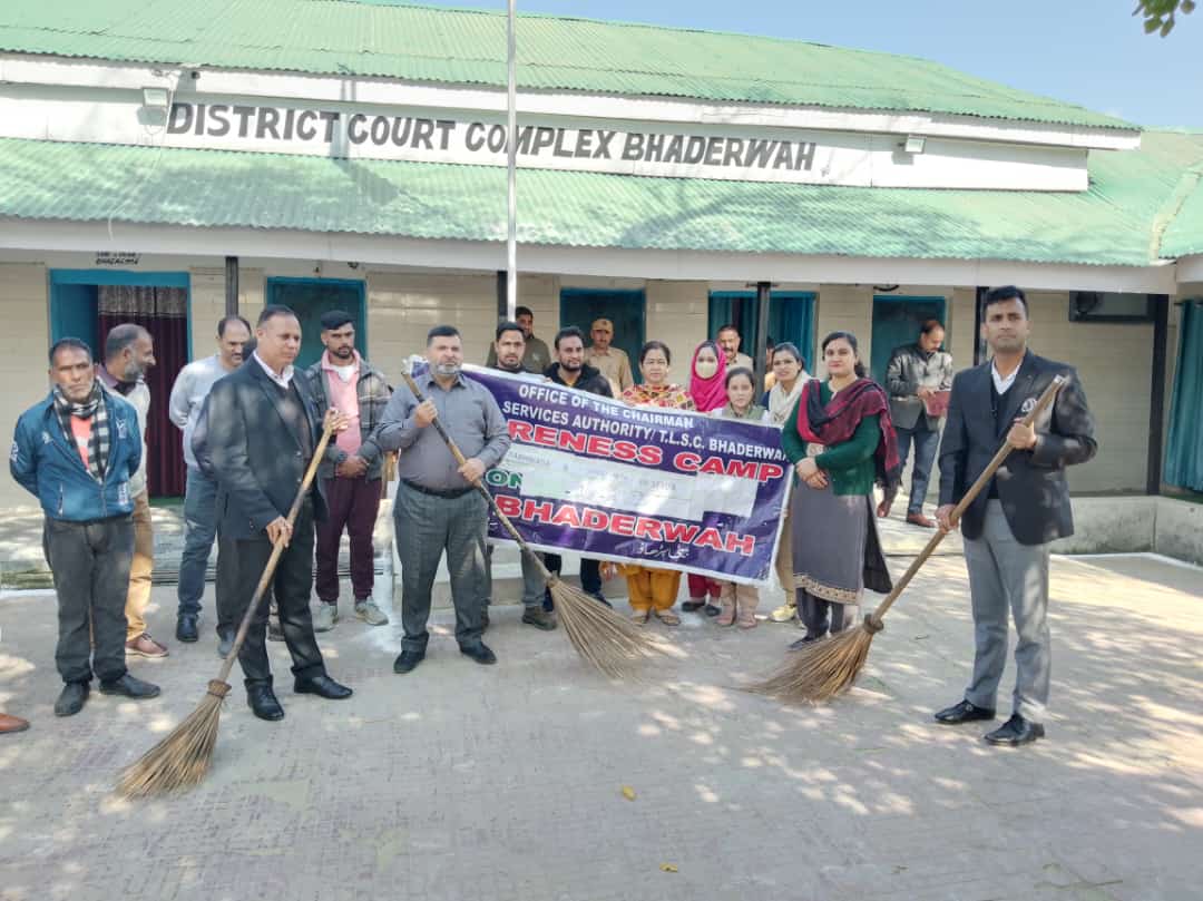 BHADERWAH , Oct 31—— In a resplendent celebration of unity and progress, the District Legal Services Authority, Bhaderwah , under the aegis of the Jammu & Kashmir Legal Services Authority commemorated the “UT Foundation Day” with a grand event that left an indelible mark on all participants. The event was organized under the able guidance of Pr District and Sessions Judge Bhaderwah and Chairman DLSA Sunit Gupta. A significant highlight of the event was the gracious presence of Ramesh Lal , Secretary of DLSA ( Sub Judge ) Bhaderwah , who graced the occasion as the Chief Guest. Speaking on the occasion, Panel Lawyer Advocate Mohd Majid Malik delivered a powerful address that shed light on the remarkable transformation in the Union Territory of Jammu & Kashmir since the year 2019. He said that Jammu and Kashmir Reorganisation Act, 2019 came into force on October 31 and as a result, 37 central laws which were not applicable to the union territory of J&K is now be applicable which included the Indian Penal Code, 1860, Code of Civil Procedure, 1908, Criminal Procedure Code, 1973, Representation Of People Act, 1950, Census Act 1948 and Prevention Of Corruption Act, 1988, Income-Tax Act, 1961, Protection Of Human Rights Act, 1993, Official Languages Act, 1963, Press Council Act, 1978, Press and Registration Of Books Act, 1867, Insolvency And Bankruptcy Code, 2016, Census Act, 1948, Public Debt Act, 1944, Indian Forest Act, 1927 and All India Services Act, 1951. Advocate Mohd Majid Malik also informed that according to Section 96 of the Jammu and Kashmir Reorganisation Act, 2019, the Central Government has requisite powers to make adaptations and modifications of the laws whether by way of repeal or amendment.“The UT Foundation Day celebration is not just a mark on the calendar; it’s a celebration of our journey towards a more prosperous and harmonious society,” emphasized Adv Mohd Majid Malik . As part of the celebration, a “Swachhata Hi Sewa” cleanliness drive was also conducted within the premises of District Court Complex Bhaderwah.