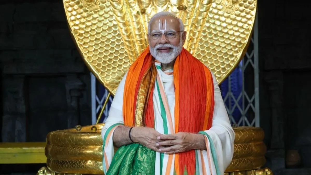 Tirupati, Andhra Pradesh, November 27 : Prime Minister Narendra Modi undertook a visit to the renowned Sri Venkateswara Swamy Temple, where he offered prayers on Monday. Communicating through social media, PM Modi stated, “At the Sri Venkateswara Swamy Temple in Tirumala, prayed for the good health, well-being, and prosperity of 140 crore Indians.”