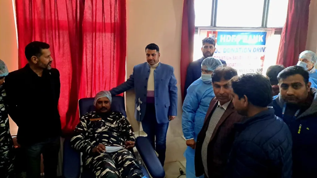 Bhaderwah, Dec 01:-In view of frequent natural calamities and repeated road accidents in Doda district, Health Department in collaboration with HDFC BANK Bhaderwah organized Blood Donation camp among multiple events in Bhaderwah under Ayushman Bhav campaign on Friday.