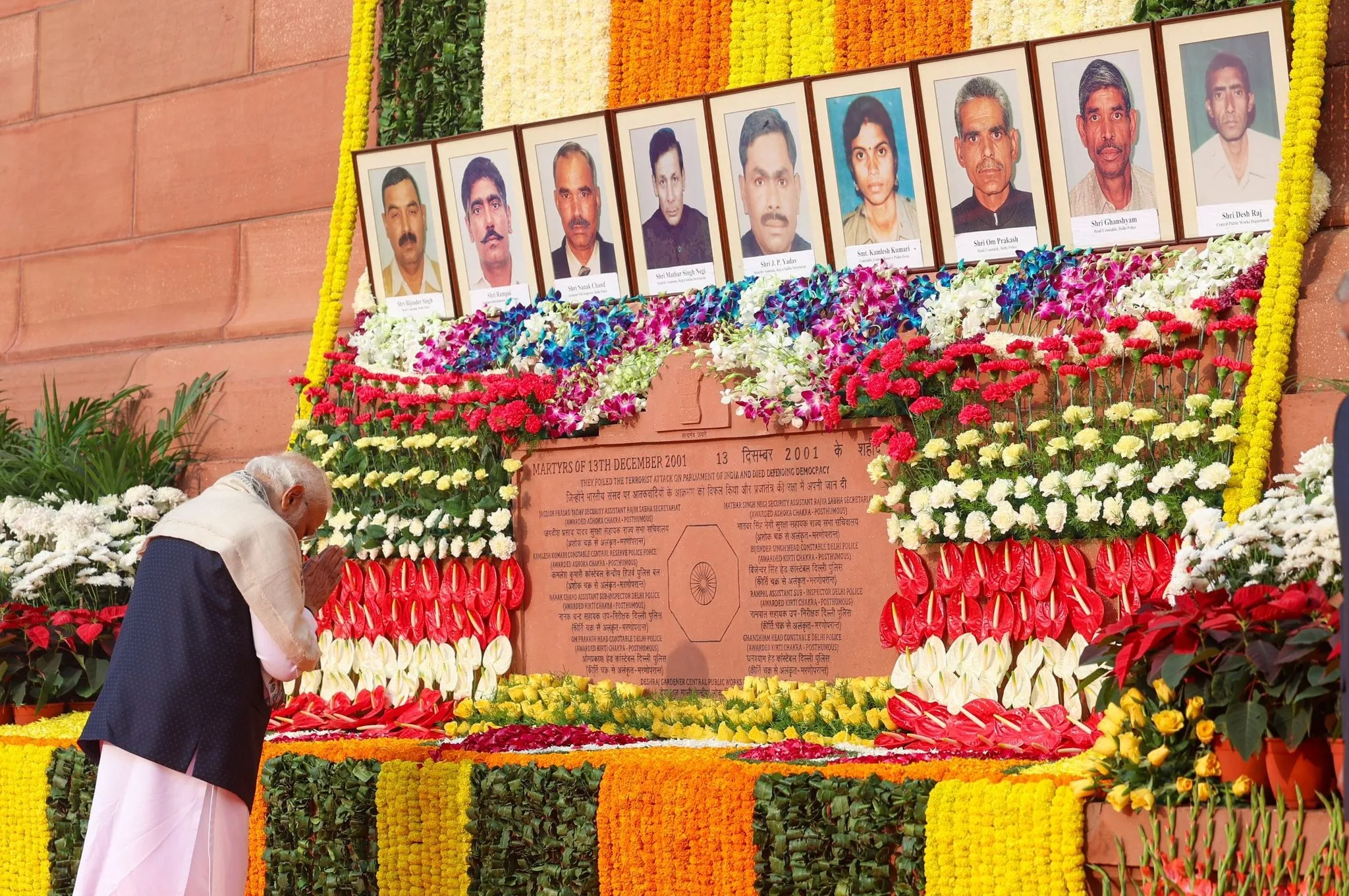 It may be recalled that it was on December 13, 2001, that Jagdish, Matbar, Kamlesh Kumari; Nanak Chand and Rampal, Assistant Sub-Inspectors, Delhi Police; Om Prakash, Bijender Singh and Ghanshyam, Head Constables in Delhi Police; and Deshraj, a gardener, CPWD, had sacrificed their lives while defending the Parliament against the terrorist attack.