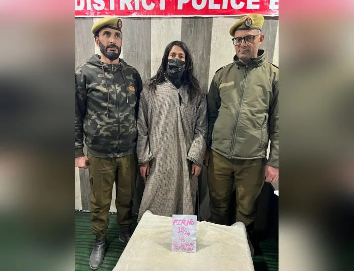 Srinagar, Jan 15: In a significant development, the police in Baramulla, Jammu and Kashmir, arrested a highly sought-after and notorious drug peddler on Monday. The apprehension took place at a checkpoint established at Juhama Market in Delina.