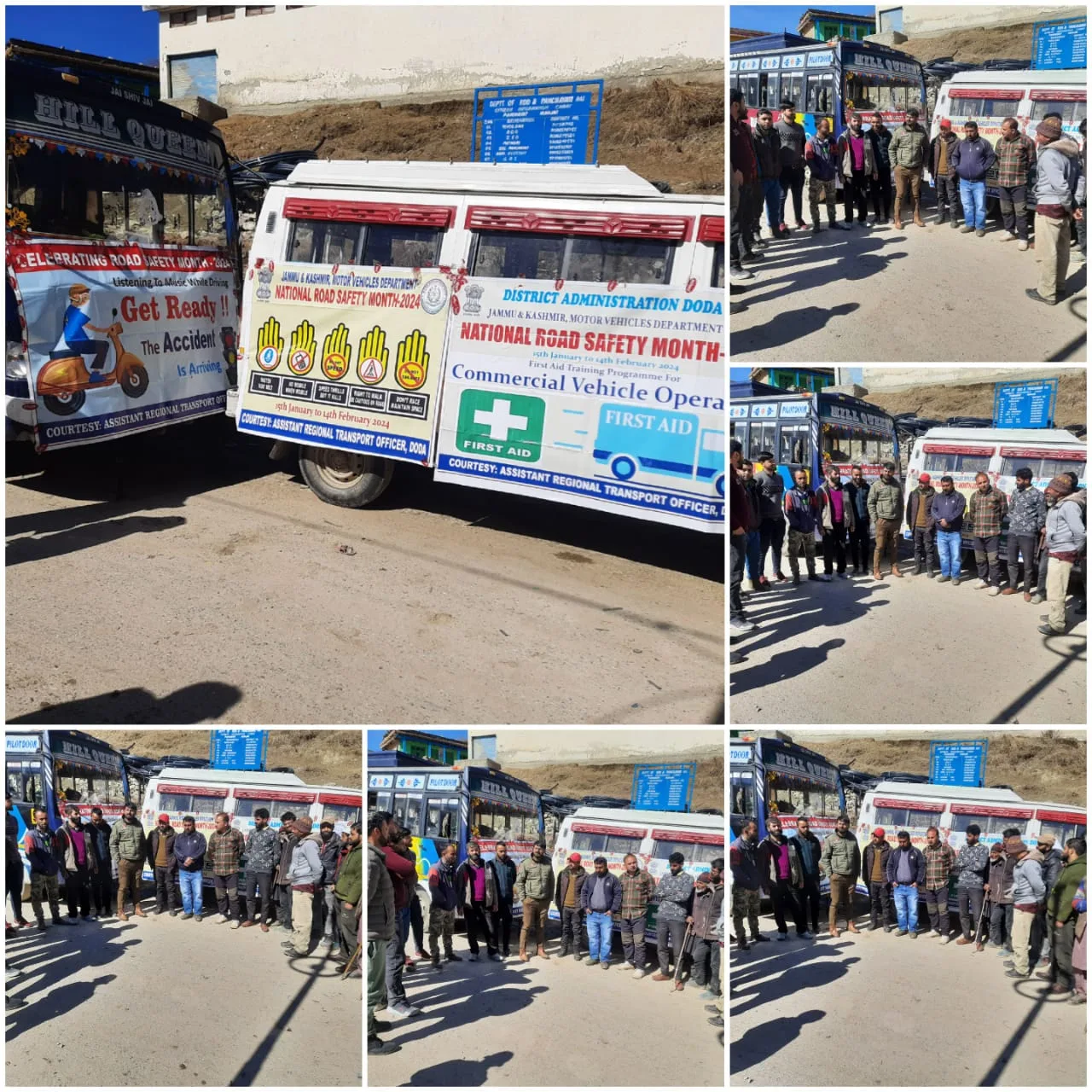 As part of the ongoing celebrations of National Road Safety Month, the Motor Vehicles Department (MVD) in Doda, under the guidance of ARTO Rajesh Gupta, organized an awareness and road safety promotion event in the far-flung area of Dessa Doda. The aim was to educate the drivers’ community and the general public about road safety measures and precautions, particularly in hilly terrains.