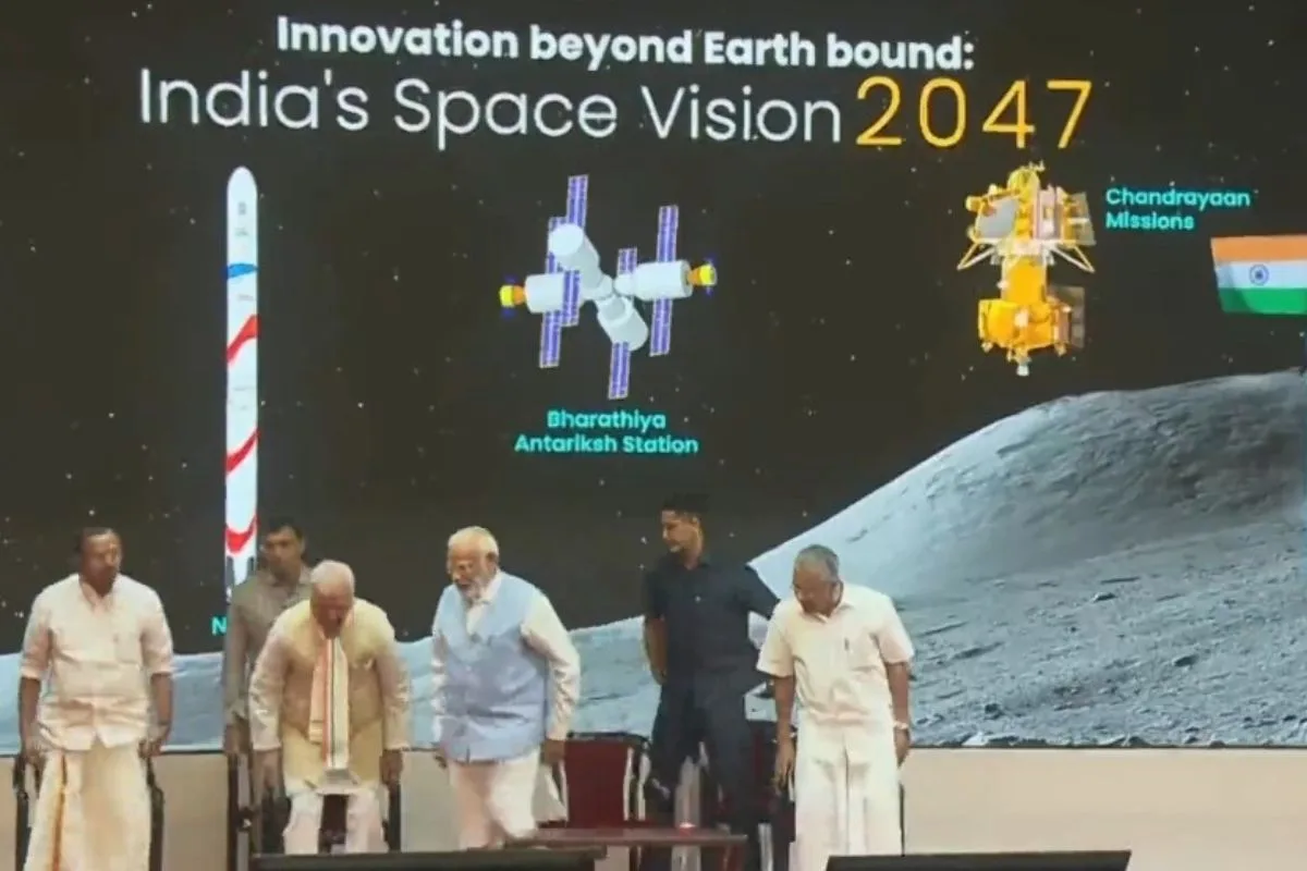 Addressing a programme at the Vikram Sarabhai Space Centre in Thiruvananthapuram, Prime Minister Modi said,” A while ago, the country saw four Gaganyaan travellers. They are not just four names or four human beings, they are the four powers that are going to take the aspirations of 140 crore Indians to space.”