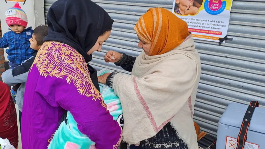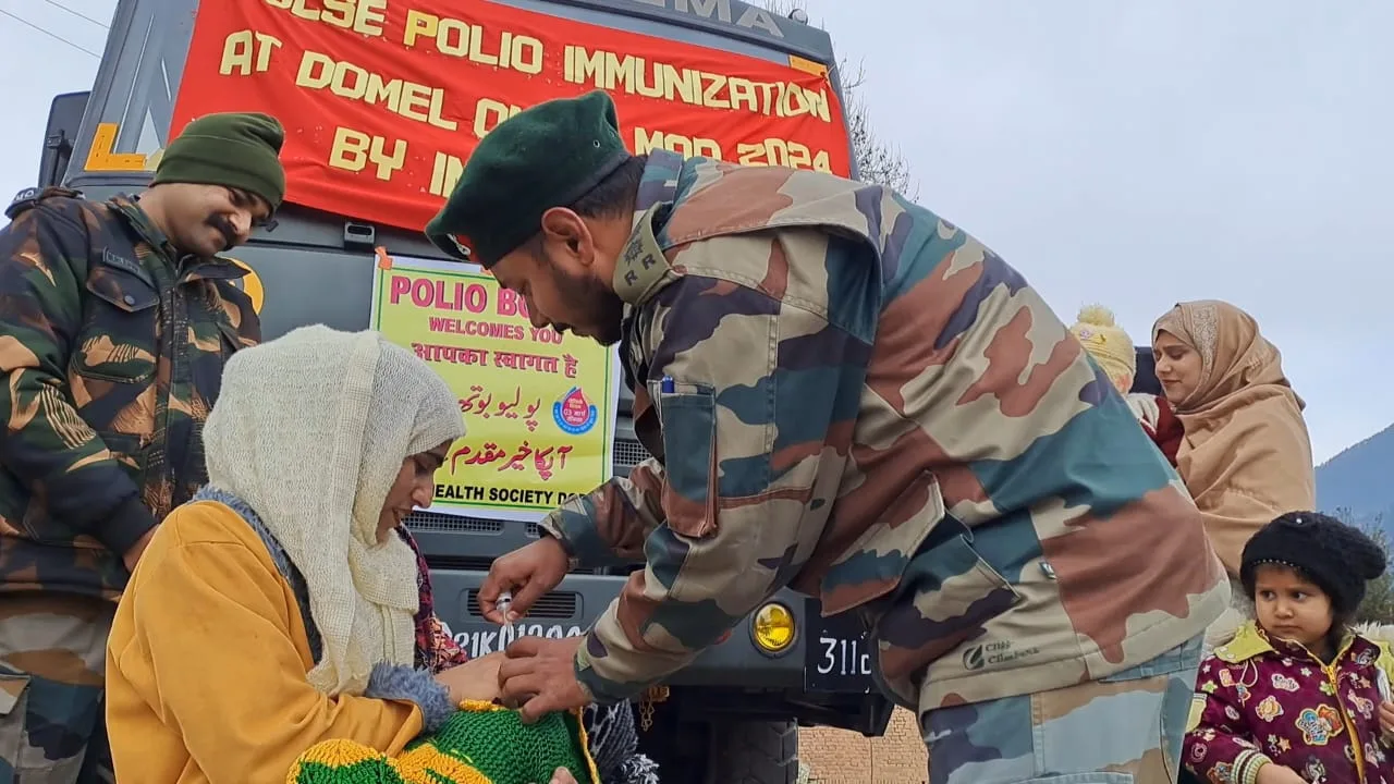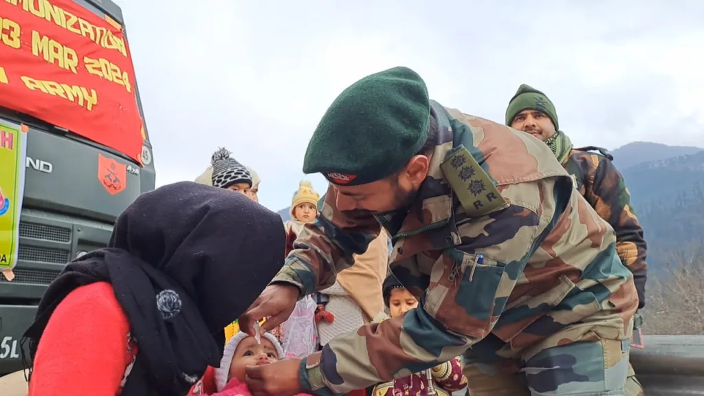 Bhaderwah : Like other parts of UT of Jammu and Kashmir, despite inclement weather conditions the Intensified Pulse Polio Immunization (IPPI) Programme 2024 for the children between 0-5 years age started in District Doda on Sunday. In a great initiative Indian Army also join hands to reach out to maximum children for the vaccination.