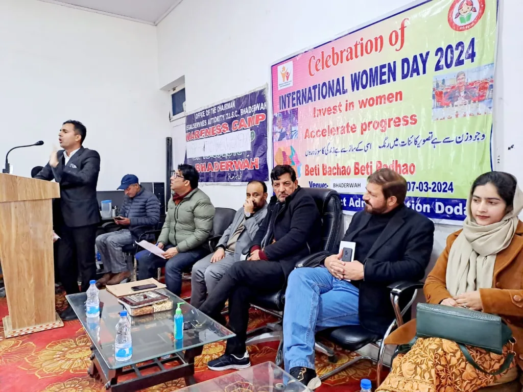 Bhaderwah, Mar 07:Focusing on recognizing women’s social, economic, cultural and political achievements, Social Welfare Department in collaboration with District Legal Services Authority (DLSA) Bhaderwah while recognizing the contributions of women organised a pre celebration of International Women’s Day (IWD) in Bhaderwah on Thursday.