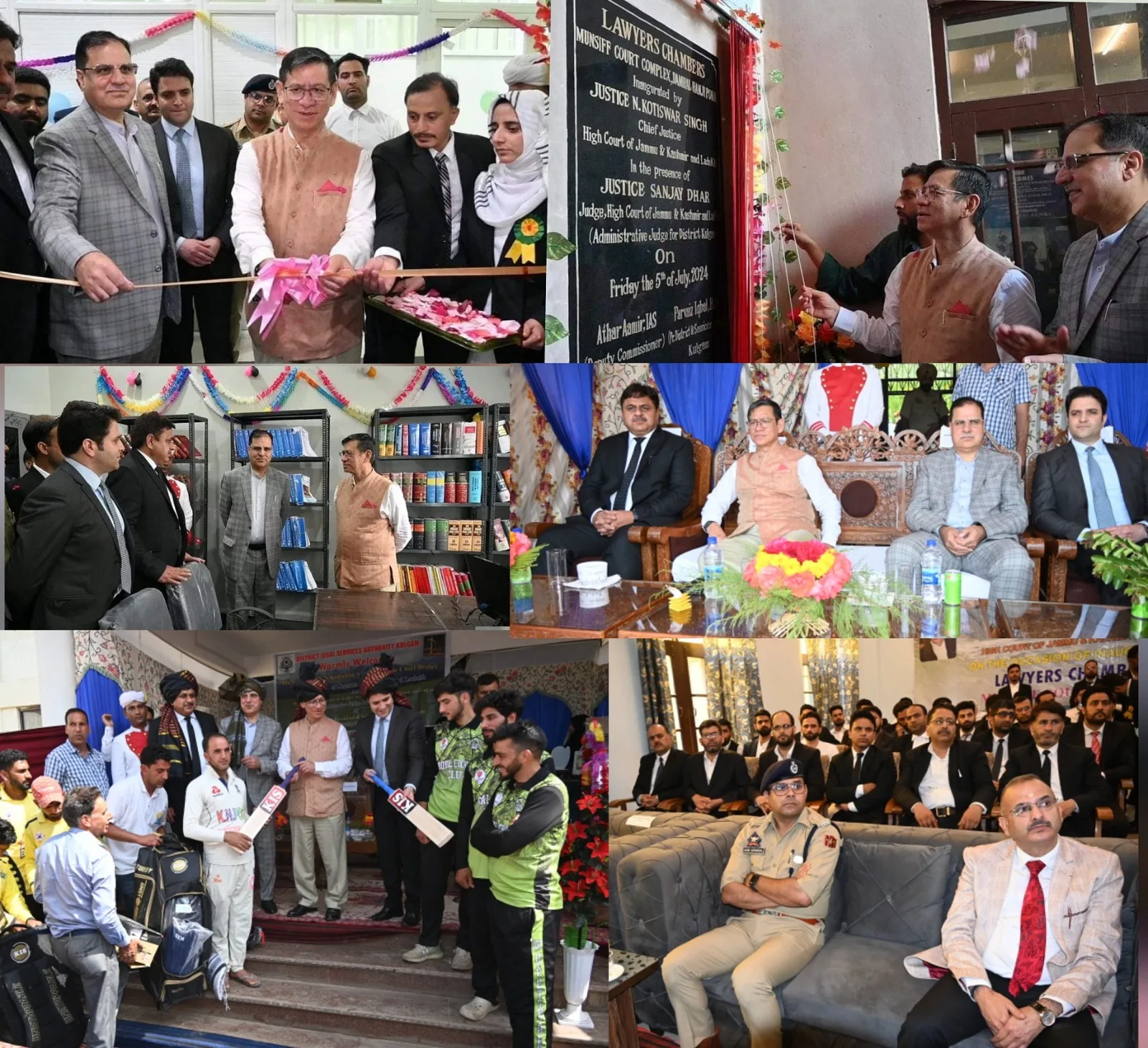 KULGAM, JULY 05: Chief Justice, High Court of Jammu & Kashmir and Ladakh, Justice N Kotiswar Singh and Administrative Judge for district Kulgam, Justice Sanjay Dhar, today inaugurated the Lawyers Chambers and Library-cum-Reading room, at Munsiff Court Complex, D.H.Pora.