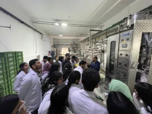 During the visit the students practically observed the pasteurization process, milk hygiene & different tests regarding the adulteration of milk. They also observed latest equipments & packing processes.