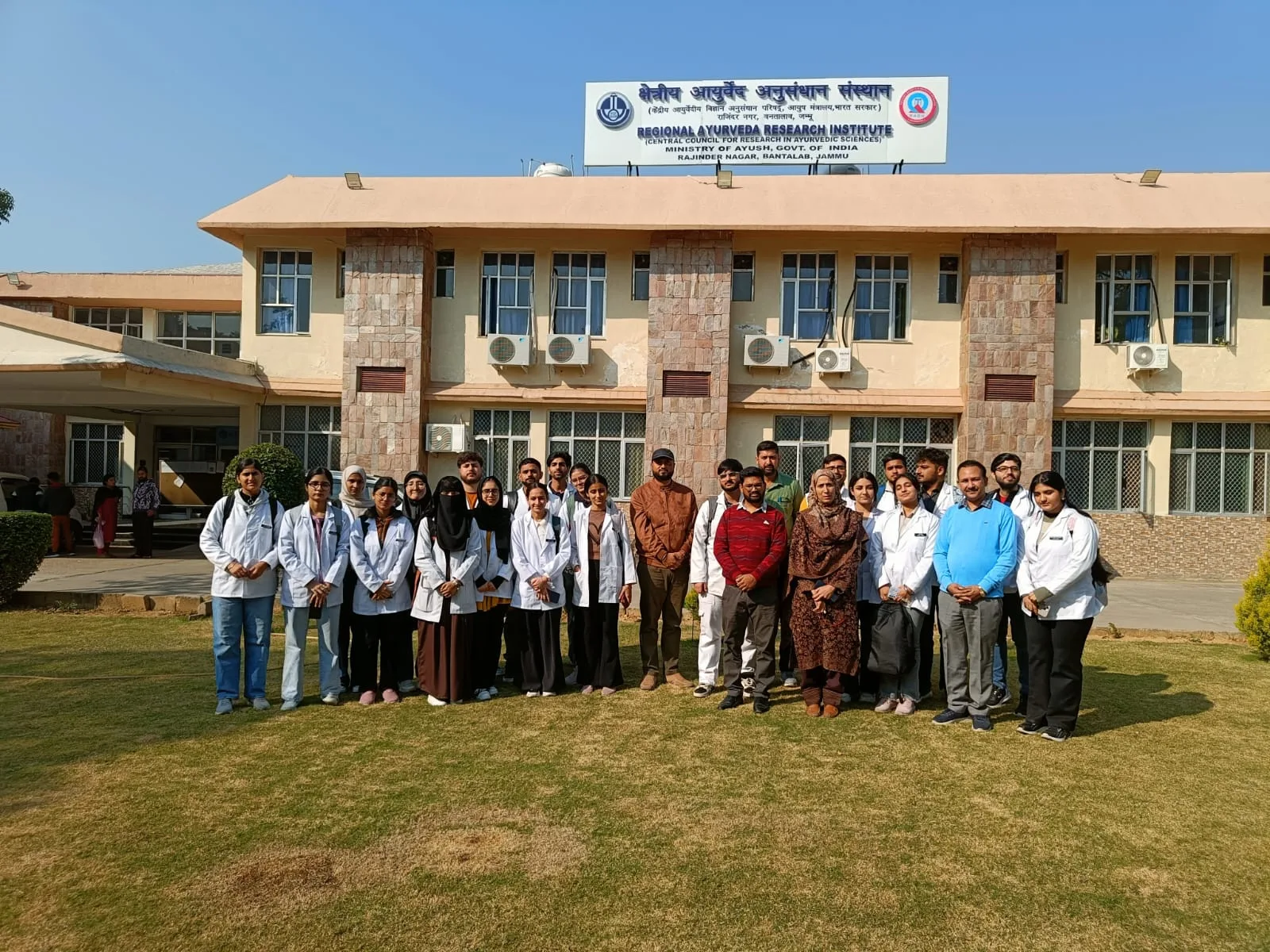 In connection with Transitional Curriculum and Under the Guidance of Principal sir Dr Ashutosh Gupta today students of BAMS batch 2024 today visited RARI Jammu. During the visit Students got a chance to Interact with the Staff of the institute and came to know about all the projects and Research activities going in the Institute. Students also got a chance to visit OPD, IPD, Panchkarma unit, pharmacy, labs etc during the visit .